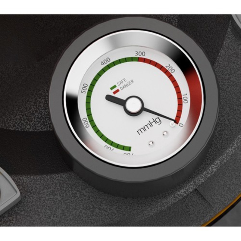Ventuza este echipată cu un manometru de înaltă precizie care indică presiunea de aspirare până la 760 mmHg. Când acul se află în zona verde, știi că ventuza este fixată perfect și se poate utiliza în siguranță maximă. Acest sistem oferă control total asupra forței de prindere și previne desprinderile accidentale.